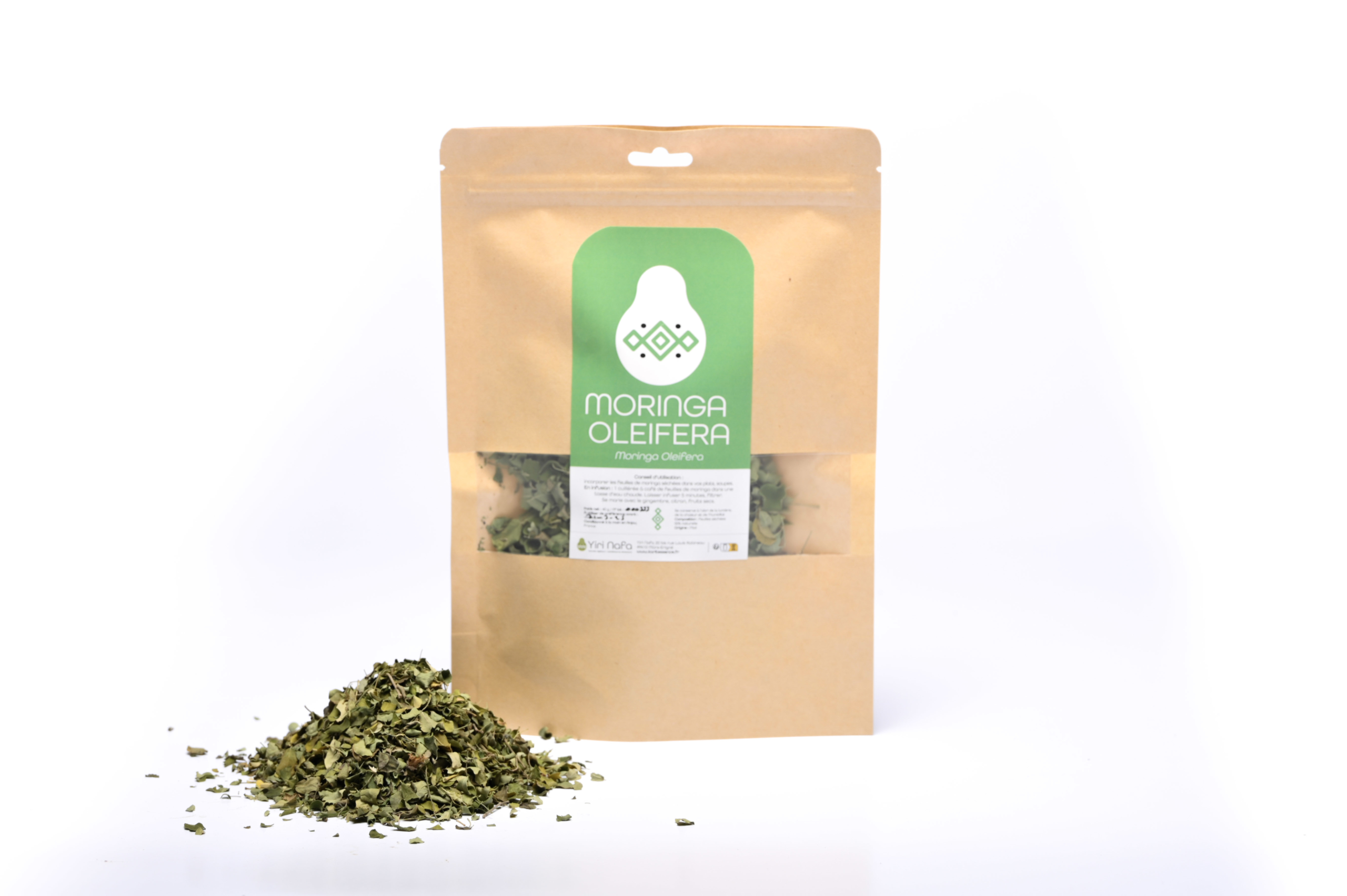 Feuilles de moringa séchées, riches en nutriments, à infuser pour une boisson bienfaisante et équilibrante. Un concentré naturel de vitalité.